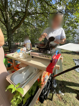 “Eine eigene Küche bauen um Mittags zu kochen und die Nachbar*innenschaft (wenn gewünscht) einzuladen”